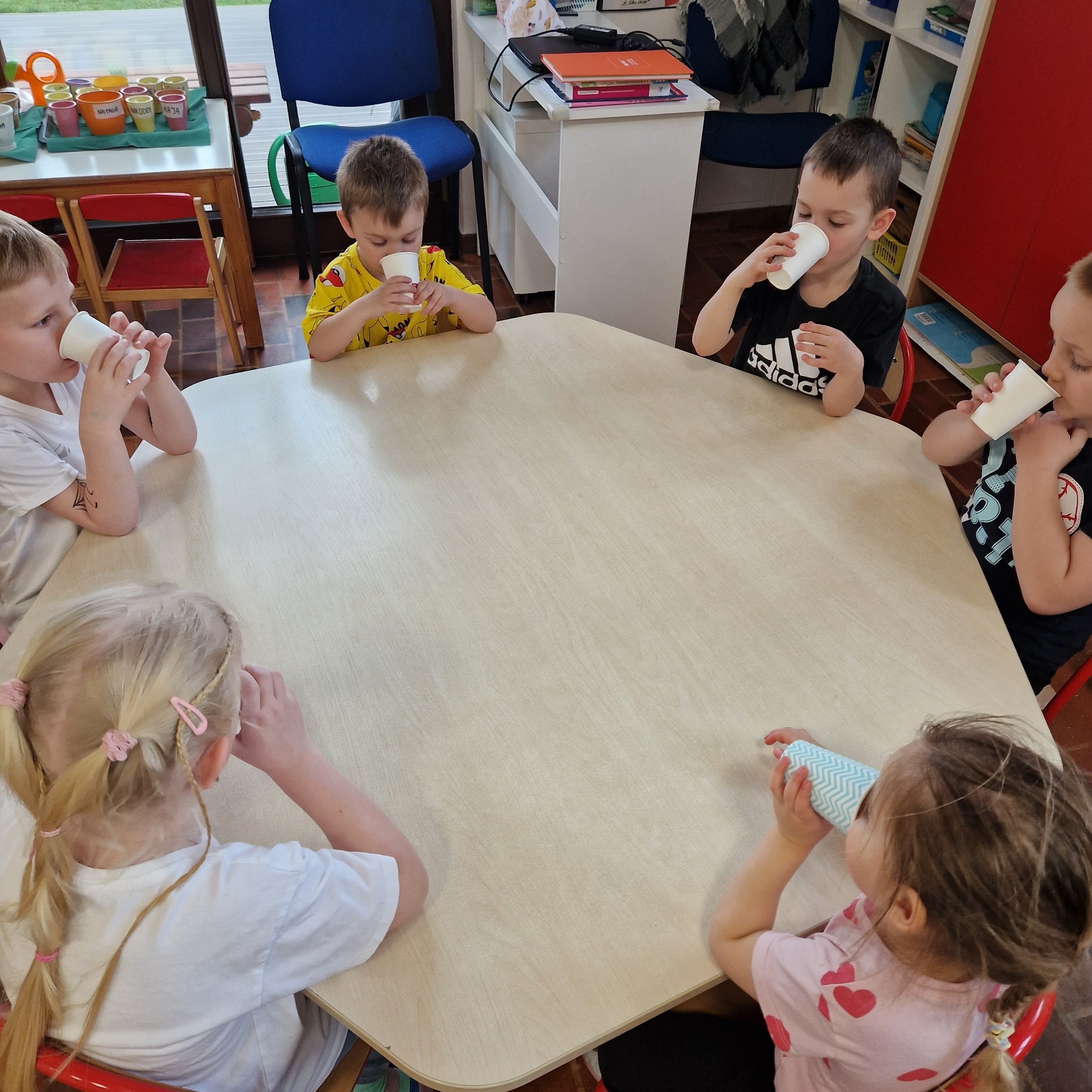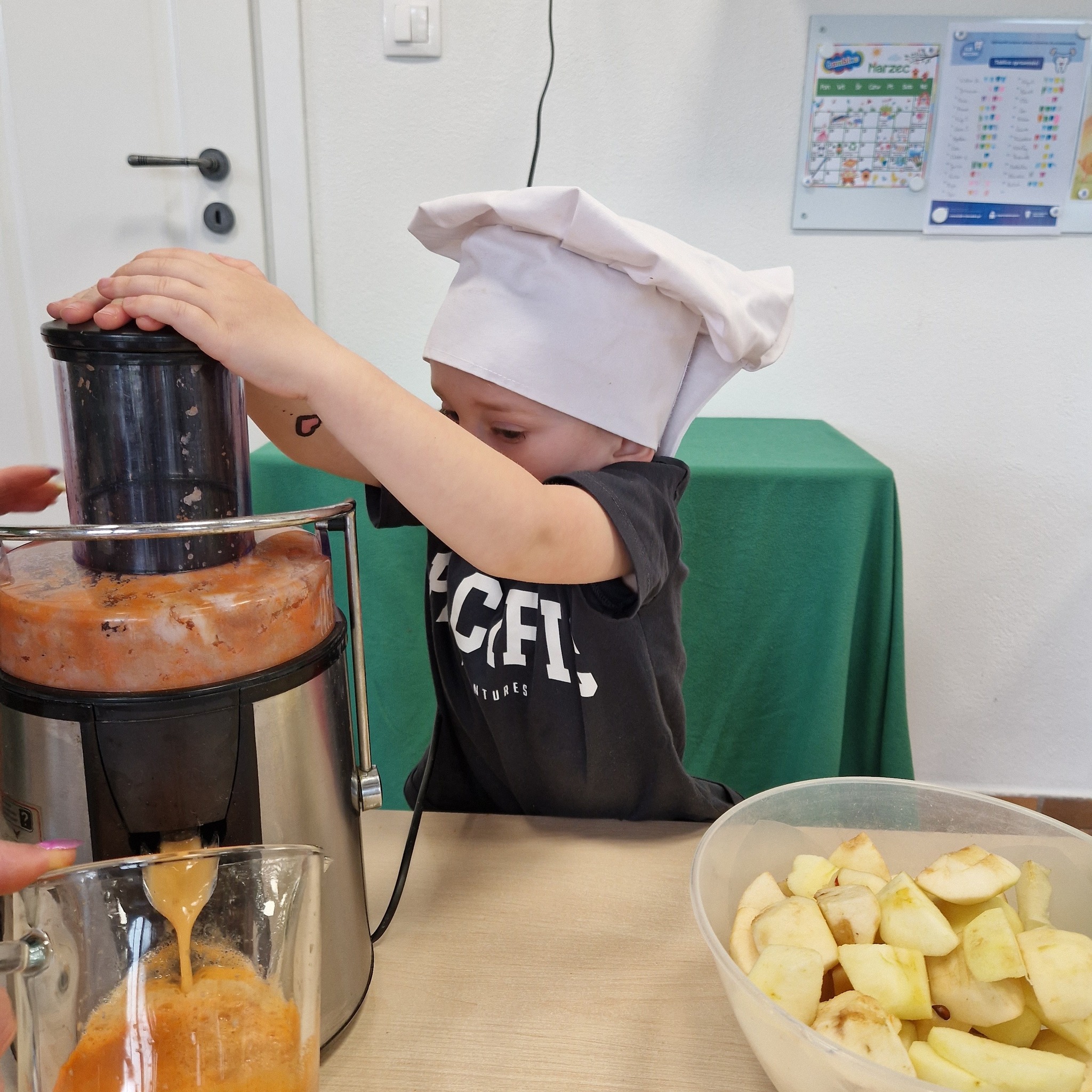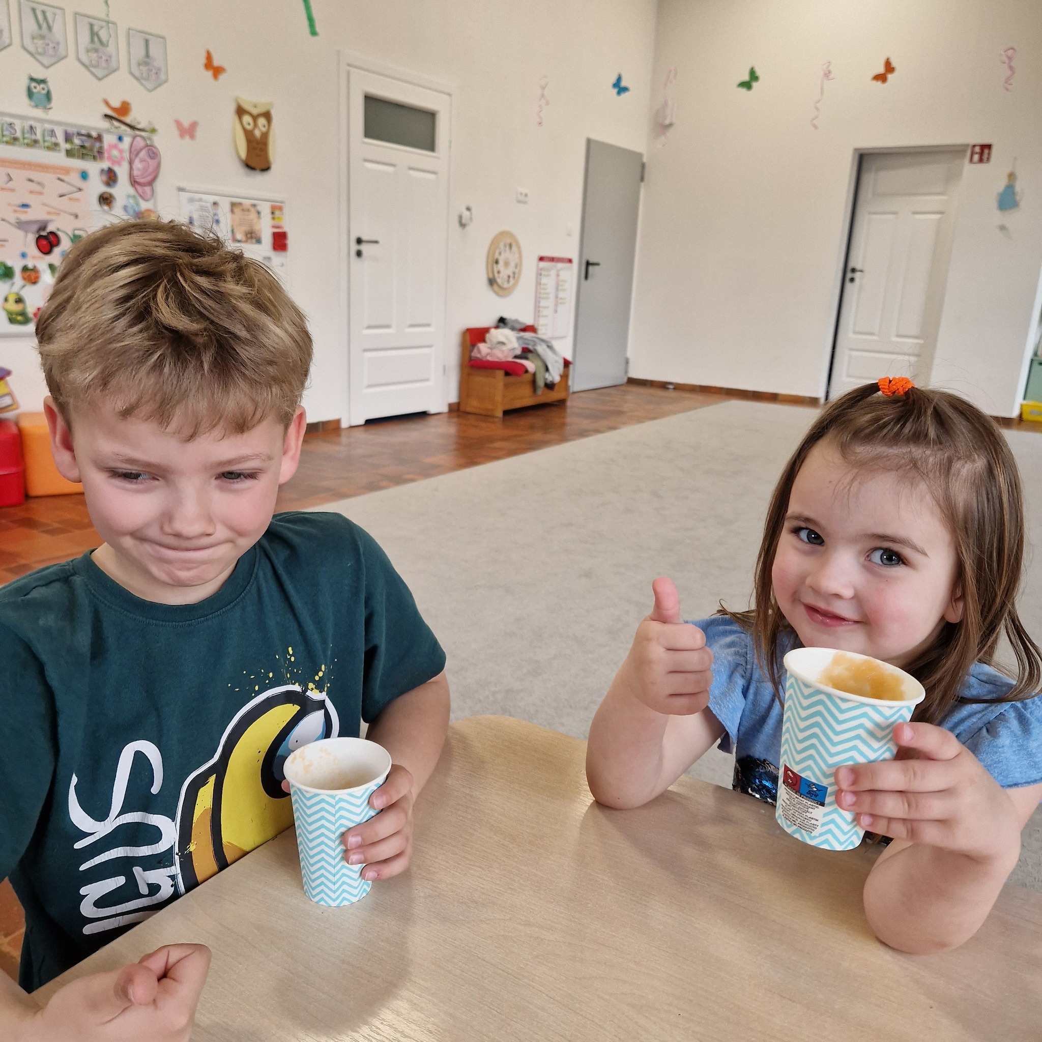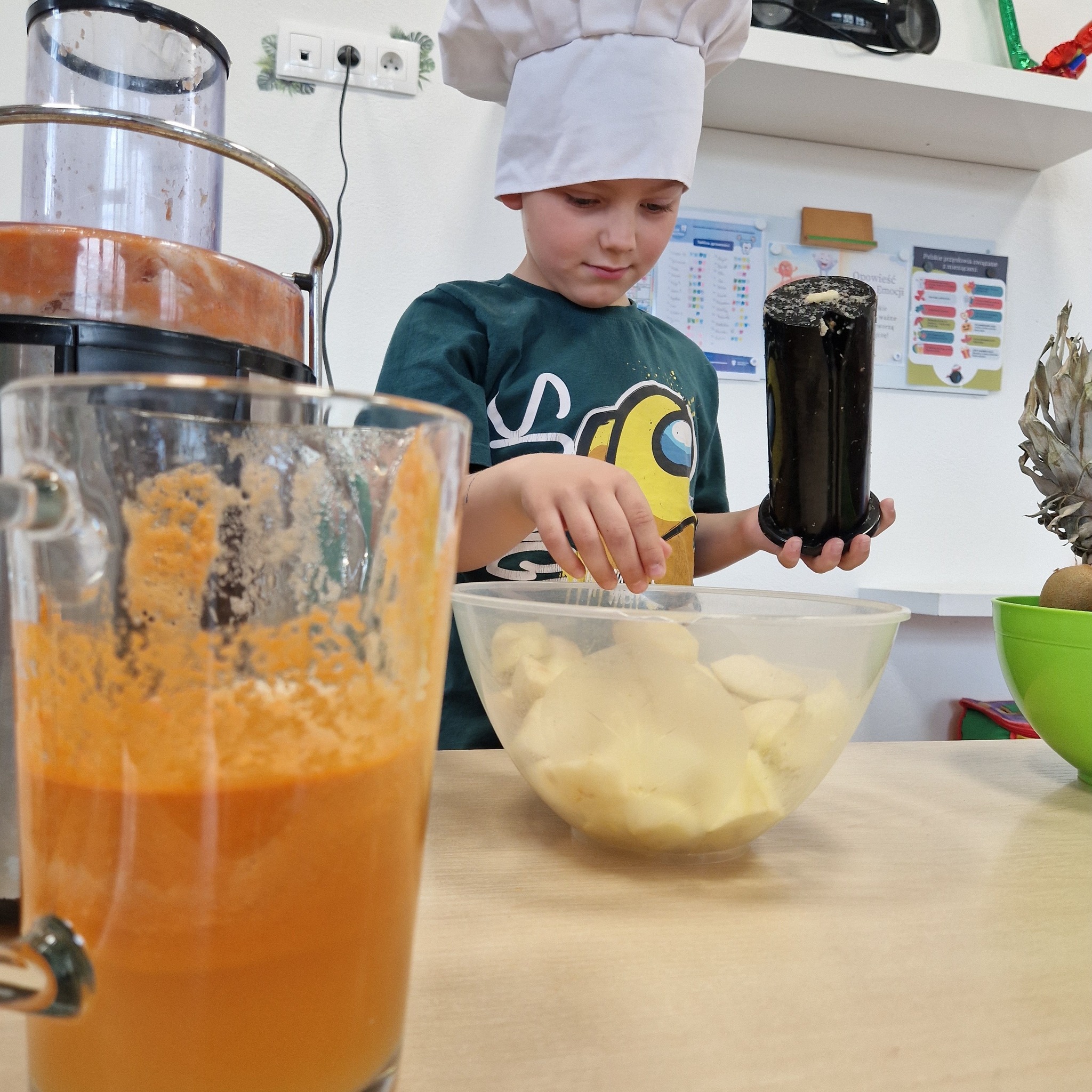 Po zajęciach nasze przedszkolaki zamieniły się w małych odkrywców zdrowia! Wspólnie przygotowaliśmy świeży, pyszny sok owocowy, dzięki któremu dzieci mogły nie tylko zadbać o swoje zdrowie, ale także bliżej poznać świat witamin. Podczas zajęć dzieci doświadczały wszystkiego wielozmysłowo – dotykały owoców, poznawały ich zapach i smak oraz obserwowały cały proces powstawania soku. To była nie tylko smakowita zabawa, ale również cenna lekcja o tym, jak ważne jest zdrowe odżywianie.