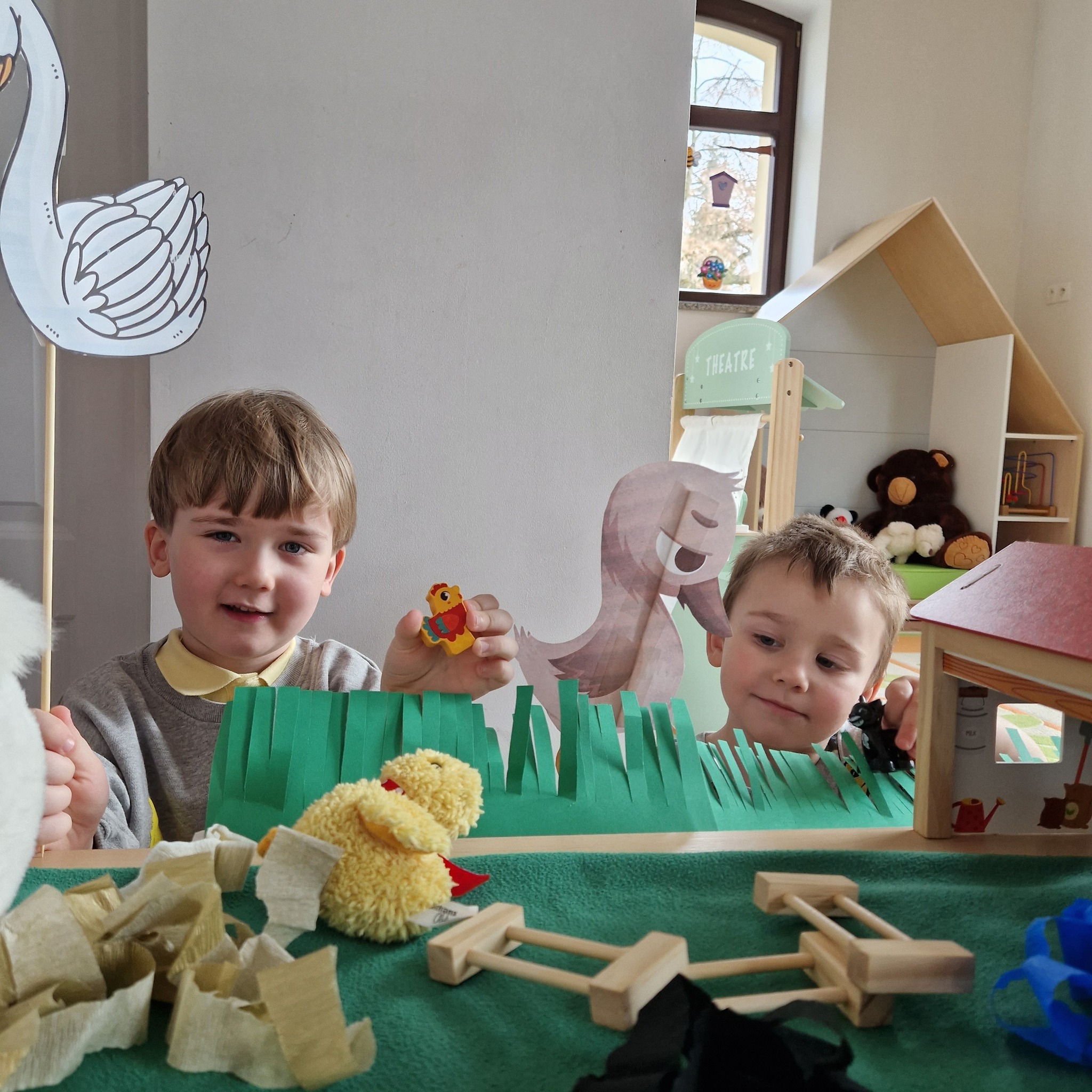 Dziś nasze przedszkolaki miały okazję wziąć udział w wyjątkowym teatrzyku i spotkaniu ze sztuką. Mali widzowie wysłuchali pięknej opowieści o „Brzydkim kaczątku” i sami mogli wcielić się w rolę narratorów, co dostarczyło im mnóstwo radości i niezapomnianych emocji.