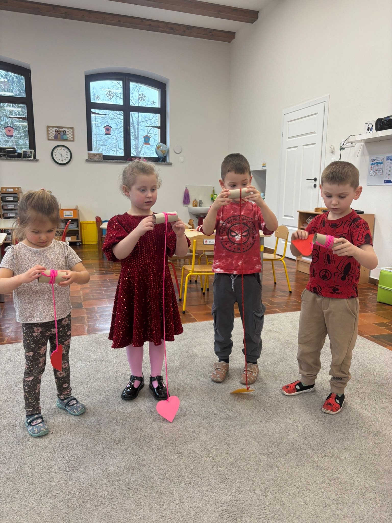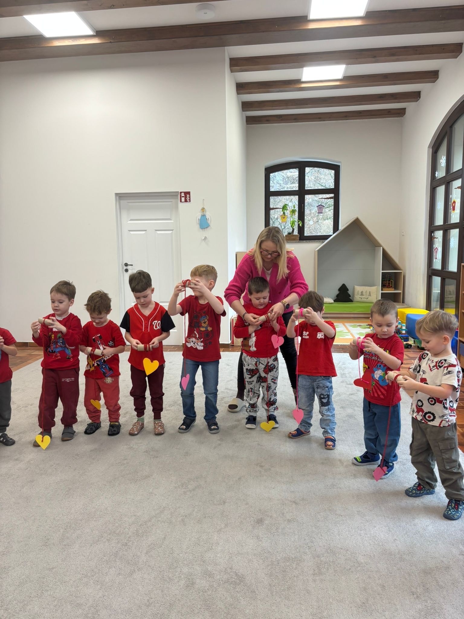 Czy trudno rozmawiać z dziećmi o miłości? Nie, jeśli podejmujemy ten temat w sposób lekki i dostosowany do ich wieku. Podczas wspólnych rozmów i zajęć dzieci mogły przekonać się, że miłość towarzyszy nam każdego dnia – w relacjach z rodziną, przyjaciółmi i rówieśnikami. Tego dnia szczególnie podkreślaliśmy, jak ważne są życzliwość, wzajemny szacunek i radość ze wspólnego spędzania czasu. Jedno jest pewne – dzieci bardzo lubią swoje przedszkole i chętnie spędzają w nim czas na wspólnej zabawie.